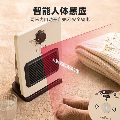 配置高感度人体识别传感器,可实时感知,15S内判断人体活动,在2分内甄别不到人,随即进入待机状态,人来立即启动加热。