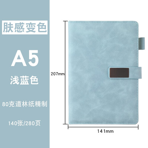满底清新蓝色,搭配加厚PU皮面质感,适合商务人群使用,侧边可以插入圆珠笔,方便携带。