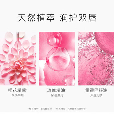粉嫩的包装戳中了少女心,里面添加了天然蜂蜡精髓、樱花提取物、玫瑰精油等成分,可以很好的滋润双唇,提亮唇色。