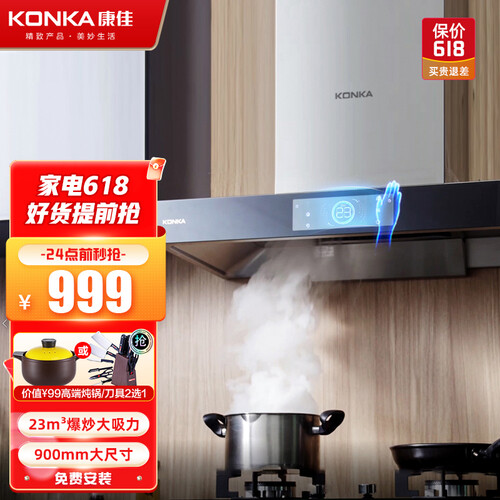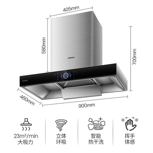 康佳 欧式顶吸自动清洗抽油烟机