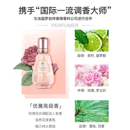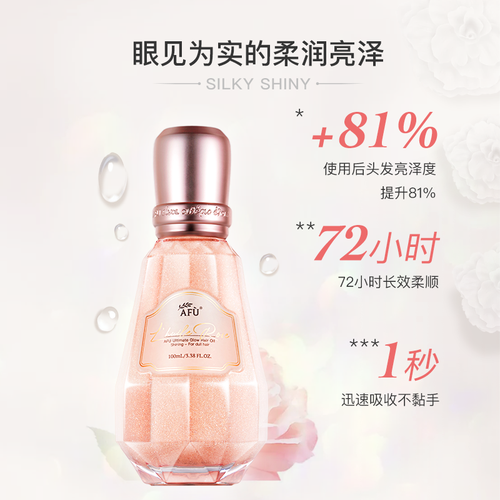 含天然植物精粹,如水般质地,清爽不油腻,迅速吸收不黏手,使用后头发亮泽度迅速提升,抚平炸毛。珍惜花卉调配,散发迷人发香。