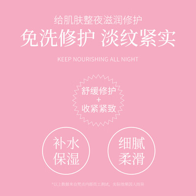 富含富勒烯成分,有效调节肌肤活力,滋润干渴缺水肌肤,让肌肤水嫩透出来。免洗修护,敷完就能睡。