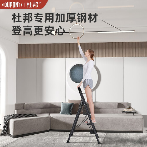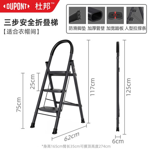 精选D型加厚钢材,轻松承托人体重量,让你高处取物更安心。采用防滑脚垫设计,起到增强摩擦力的效果,让你踩踏更加稳健。