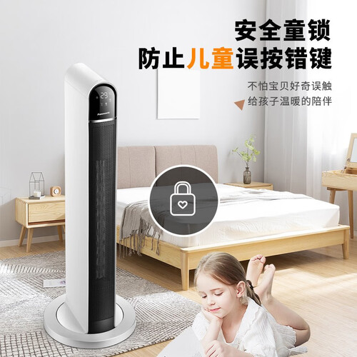 PTC发热结构搭配上广角摇头设计,带来更快速的制热效果,让温暖不用等待。童锁功能加身,带来更安心的使用效果。