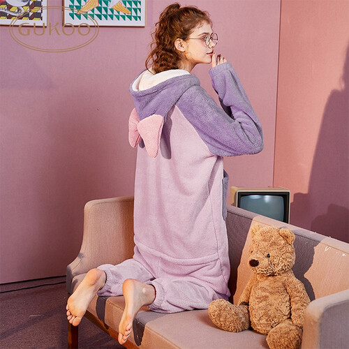 这款睡衣采用了童趣十足的外观设计,看起来可爱有型。连帽的款式,保暖更耐看,戴上秒变卡通形象,可爱迷人。