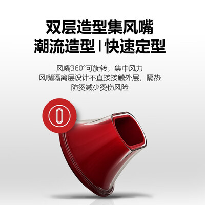 65°C恒温干发,呵护头发的毛鳞片,使得头发快速干掉,水分不会流失。双层造型集风嘴,不直接接触外层,隔热效果好。