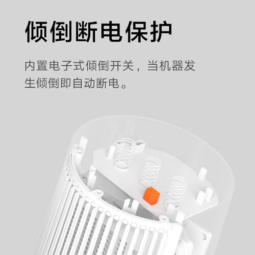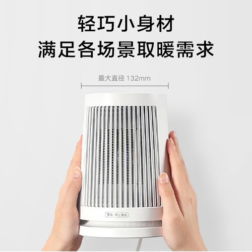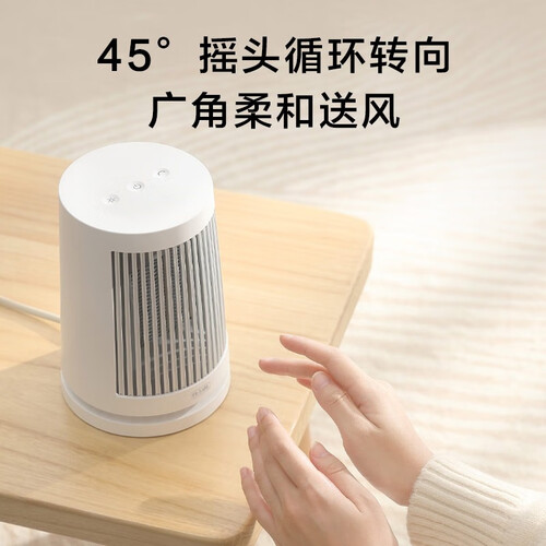 适用于桌面取暖使用的迷你暖风机,无名火设计的机身内置即开即热PTC陶瓷发热体,通过45度摇摆循环转向送出暖风。