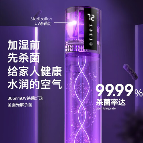 8L超大容量水箱,一次加水续航30小时,省心更省力。UV紫外线除菌,除菌率更高,水雾不带细菌,洁净更健康。