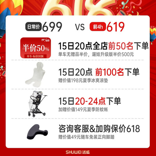 单手推车设计,出行方便又舒适。配有独立靠背,增加宝宝的舒适感,给宝宝更加安全稳定的感觉。一键收车设计,收纳方便快捷。