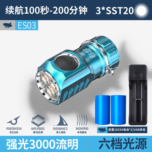 微笑鲨 可充电强光远射手电筒
