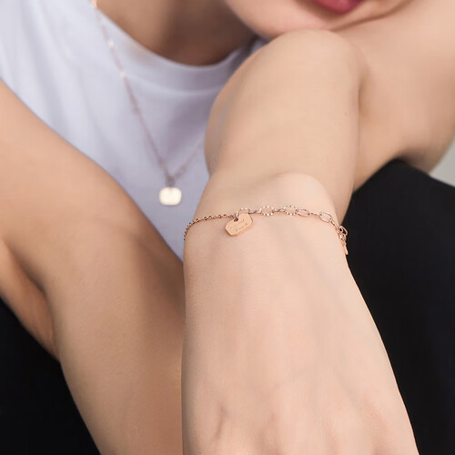 篆刻着GOODLUCK的个性方形铭牌,象征好运连连,展现INS风。光泽流转的玫瑰金色,凸显皮肤的娇嫩白皙。