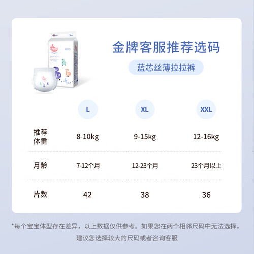 立体大腰围处理舒适,贴合不紧勒,帮助呵护小肚肚。复合结构的芯体设计,具有较好的韧性,二次吸收比一次快,锁住尿液不断层。