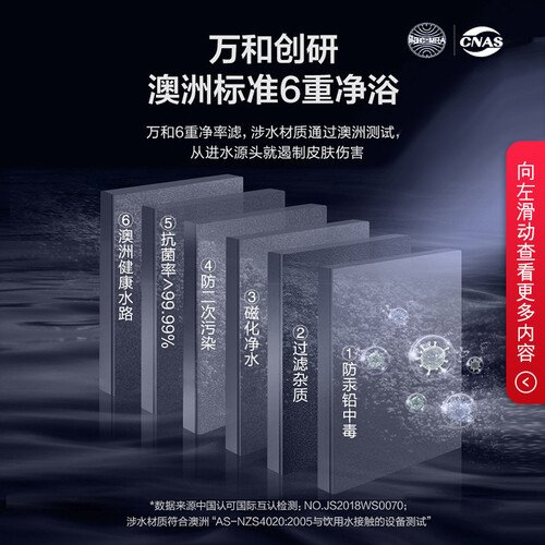 采用双擎四驱技术,水量更澎湃,加热更迅速,即开即用,告别等待。6重过滤,贴心呵护家人的肌肤健康。