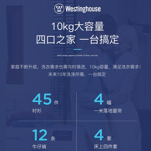 10中洗涤结合10种烘干,配以大容量内筒,满足大家庭洗烘需求。低温热泵烘干,智能调节干衣时间,不过烘,衣服蓬松柔软。