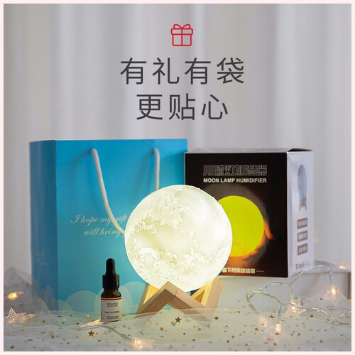 月球灯加湿器,静音出雾,香薰加湿功能,更能满足你的精致生活。使用香薰精油,更加安全健康,气味幽香,很适合睡前放松使用。