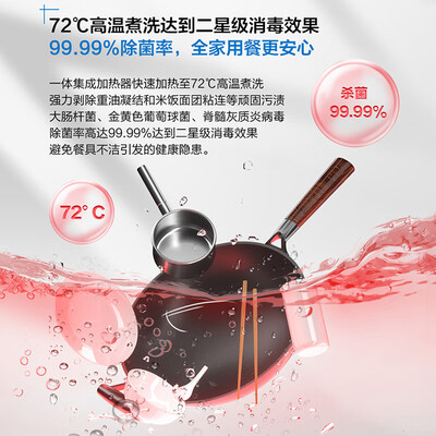 变频电机动力,搭载高压水柱,煎锅久置都能洗干净。采用五种洗涤模式,按需清洗,餐具更干净。节能省水,比手洗还省水。
