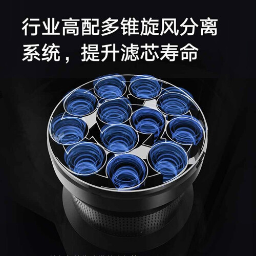 采用全新马达,具有澎湃动力,能够吸走深处污垢,让灰尘无处遁形。搭载多锥旋风分离系统,防止滤芯阻塞,延长使用寿命。