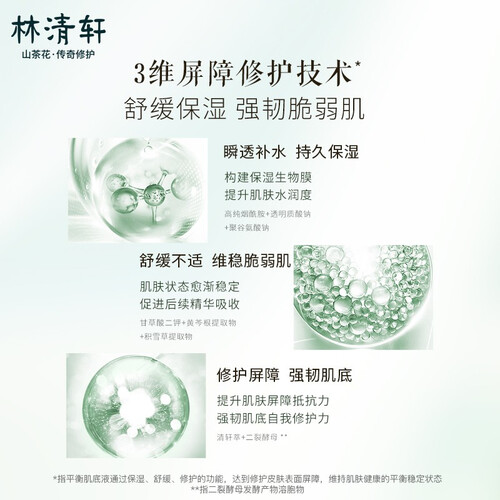 采用经典山茶花配方打造,能够修复肌肤屏障,同时平衡肌肤水油状态,为后续护肤品吸收打开通道。坚持使用强韧肌底,提升修护力。