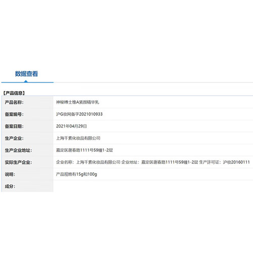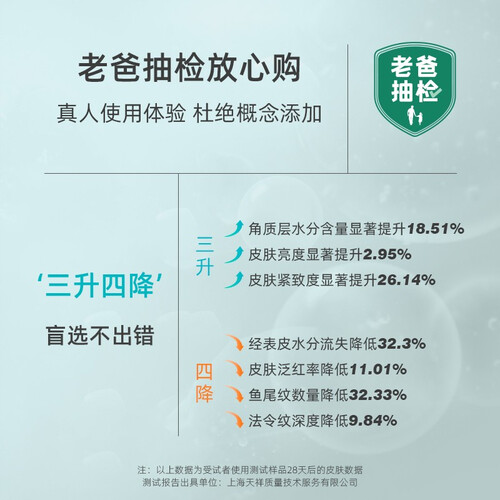 2%二裂酵母,以达到更好的养肤效果,肌肤状态可以更好。5%新A醇成分,以达到更好的紧肤效果,延缓肌肤松弛速度。