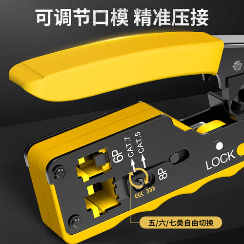 采用防滑弧度手柄,加之小巧外型设计,单手就能操作。另外可调节口模可自由切换,精准到位,搞定各类水晶头。