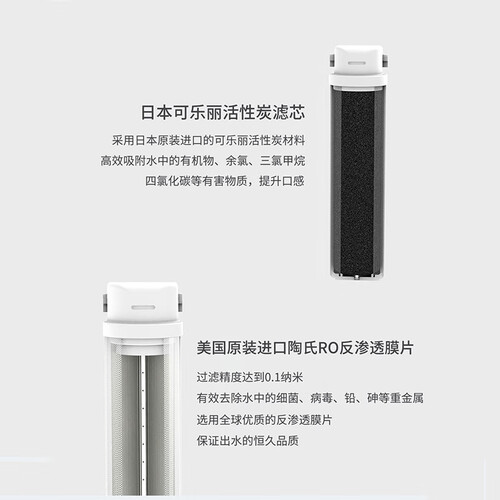 专利流道设计,水损失更少,性能更稳定,使用更省心。采用日本可乐丽活性炭滤芯,可吸附掉水中的有机物、余氯等,提升饮水口感。