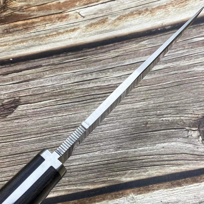 外形精致,手柄采用高密度蟒纹亚麻板材料制成,手感舒适环保无污染。选用新型冷作模具钢,更适合高温使用,韧性提升。
