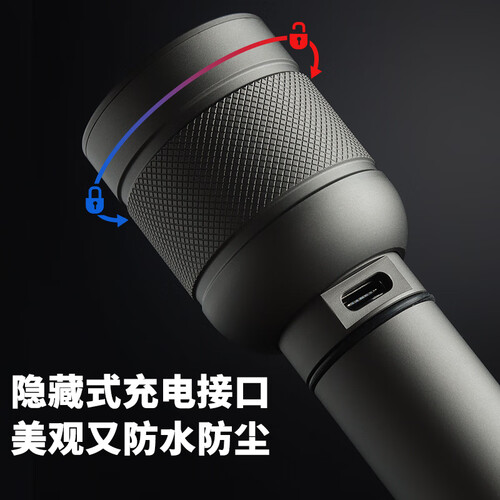 按键的位置在筒头和筒身的凹陷处,收纳在背包里面的时候可以防止误触,筒身采用了极细喷砂工艺,触感细腻柔滑,握持感更加舒适。