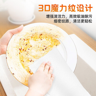 新颖的3D魔力纹设计,增强了纸巾的摩擦力,轻轻擦拭几下即可将一般油污清洁干净,厨房清洁更轻松。
