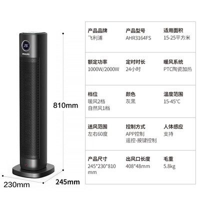 2000W大功率PTC发热体,暖风强劲,输送距离远,即开即热升温无需久等。15℃-45℃温度可调节,满足冬日取暖需求。