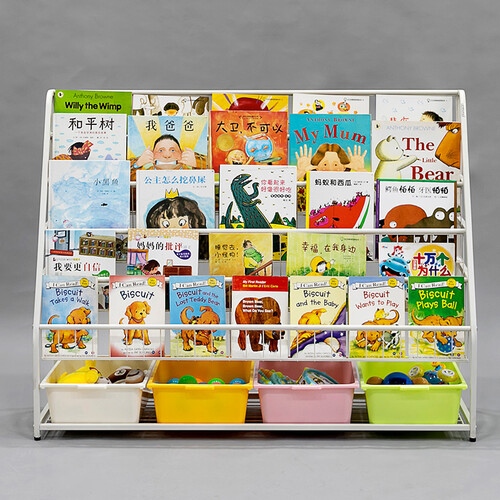 采用梯形结构设计,绘本摆放的位置一目了然,宝宝拿取更便捷,搭配底部收纳层,玩具有处可放不再凌乱不堪。