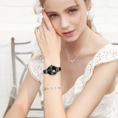 表盘采用简单的圆形弧度,线条莹润,适合搭配各种风格的服饰。双按便捷的保险扣,实用又方便,设计人性化。