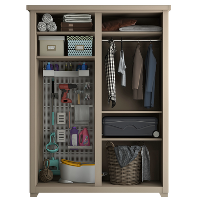 日式的收纳方法,提高柜体空间利用率,容纳更多物品。隔断可移动式设计,可以经过调整高度,避免不够高的尴尬。