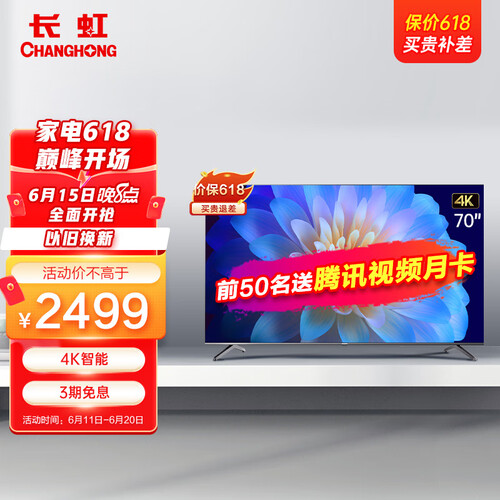 70英寸的超大巨屏设计,造型更显纤薄,能为您提供更宽阔的视野体验,能看到更多精彩细节。