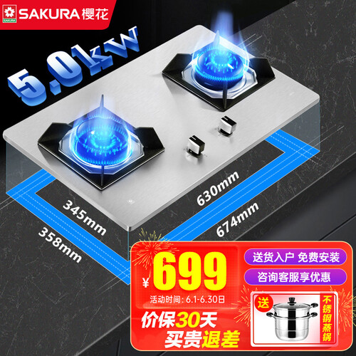 樱花 精钢面板燃气灶