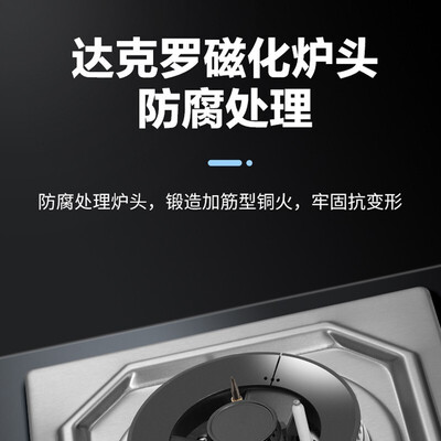 旋钮选用锌合金材质打造,安全防烫,操作调火更舒适。台嵌两用设计,安装不易受限制。拥有较高热效率,节能省气更环保。