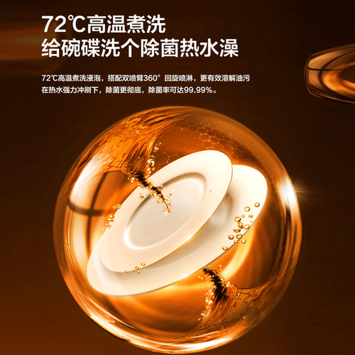 拥有三重除菌功能,可以轻轻松松的消除细菌,使得餐具更加的干净,结合新一代热风烘干功能,餐具更加干爽。