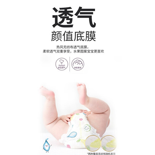 表层弱酸性配方,贴近宝宝正常肌肤PH值,更进一步远离宝宝红屁屁。升级芯体设计,35倍智能吸水,超薄芯体,瞬吸干爽。