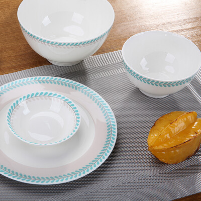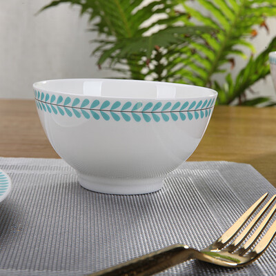 碗沿上带有一圈清新亮眼的绿叶设计,花纹简单不复杂却不会让碗身显得单调,摆放在餐桌上更显独特;适用于微波炉和洗碗机。