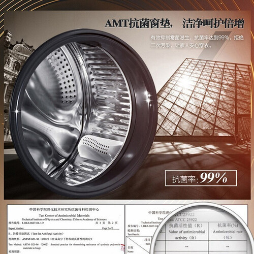 搭载AMT窗垫,能够有效避免细菌的滋生,呵护家人的穿衣健康。拥有无缝焊接内筒,防止造成衣物的刮伤,洗衣更护衣。
