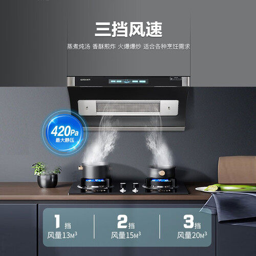 采用大直径的风轮,吸烟更加持久,让你肆意爆炒。选用核心的双电机,整体的寿命更长久。延时关机的设计,告别余烟萦绕。