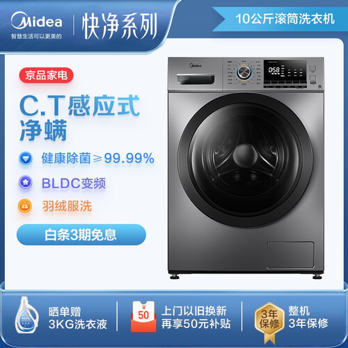 这款洗衣机采用10公斤大容量设计,能够一次性满足全家人衣物洗护需求。搭载BLDC电机,运行低噪静音,不会扰家人睡眠。