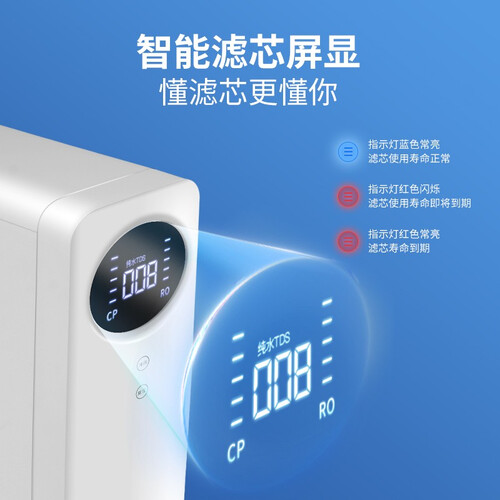 贴心采用小巧精致的造型设计,方便自由摆放,节约占地面积。智能提醒功能,轻松观察滤芯状态,省心更换。