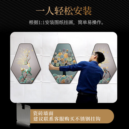 晶瓷工艺,晶莹剔透,防潮不褪色,镁铝合金拉丝画框,使空间更协调,空间百搭。