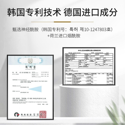 烟酰胺成分可减少暗沉,淡化痘痕痘印,提亮肤色更水润,神经酰胺成分形成天然保护膜,亮泽修护肌肤,脸部紧致更弹嫩。