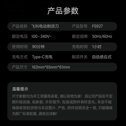 智能感应剃须,贴面即可启动,感知每次需求,享受快速剃须。智能堵转保护,防止胡渣过多导致机器故障。