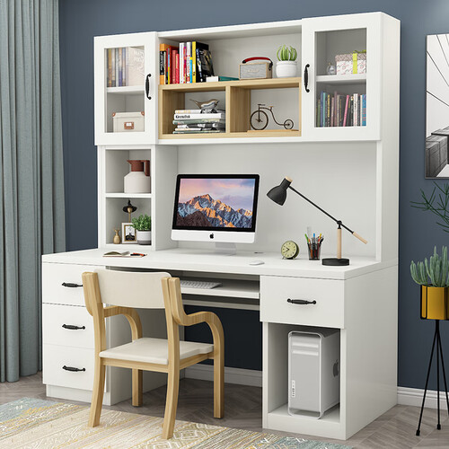 防尘玻璃柜门设计,轻松保护物品不受损,透明可视化,方便取物。宽大桌面设计,可以摆放显示器,并且剩余空间仍然充裕。