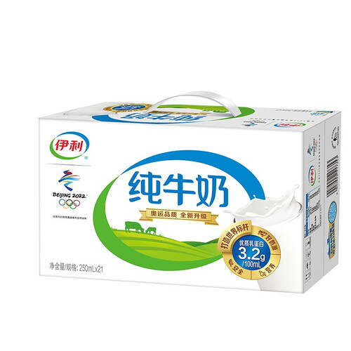 每100ml牛奶含有3.2g优质乳蛋白和100mg原生钙,营养丰富,轻松补充人体每日营养所需。