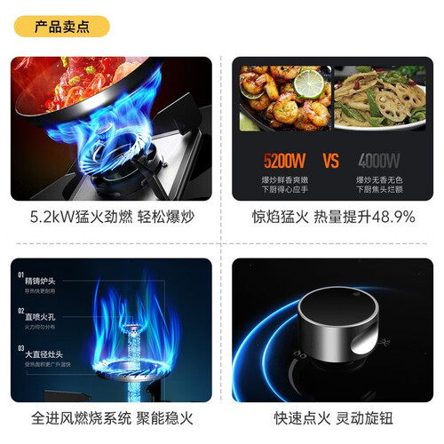 拥有聚能锅架,烹饪过程不易熄火,为您解决使用烦恼。脉冲电子点火技术,无需持久按压,告别繁琐点火步骤。