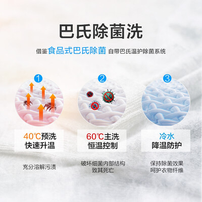拥有自编程洗涤模式,可以根据衣物材质调整洗涤方式,有效减少了浪费。采用巴氏除菌洗设计,清洁衣物,卫生无菌。