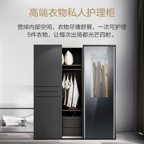 搭载紫外线除细菌科技,释放纯净蒸汽护理衣物,守护健康。内部宽敞大空间设计,使衣物尽情舒展,干衣不留褶皱。